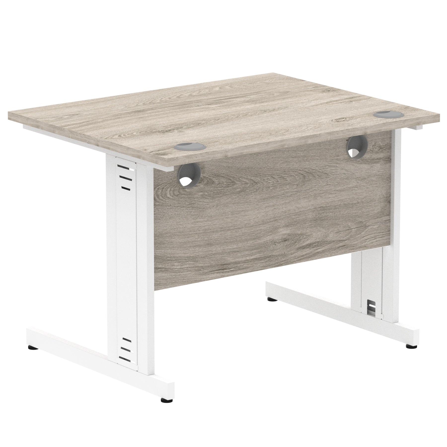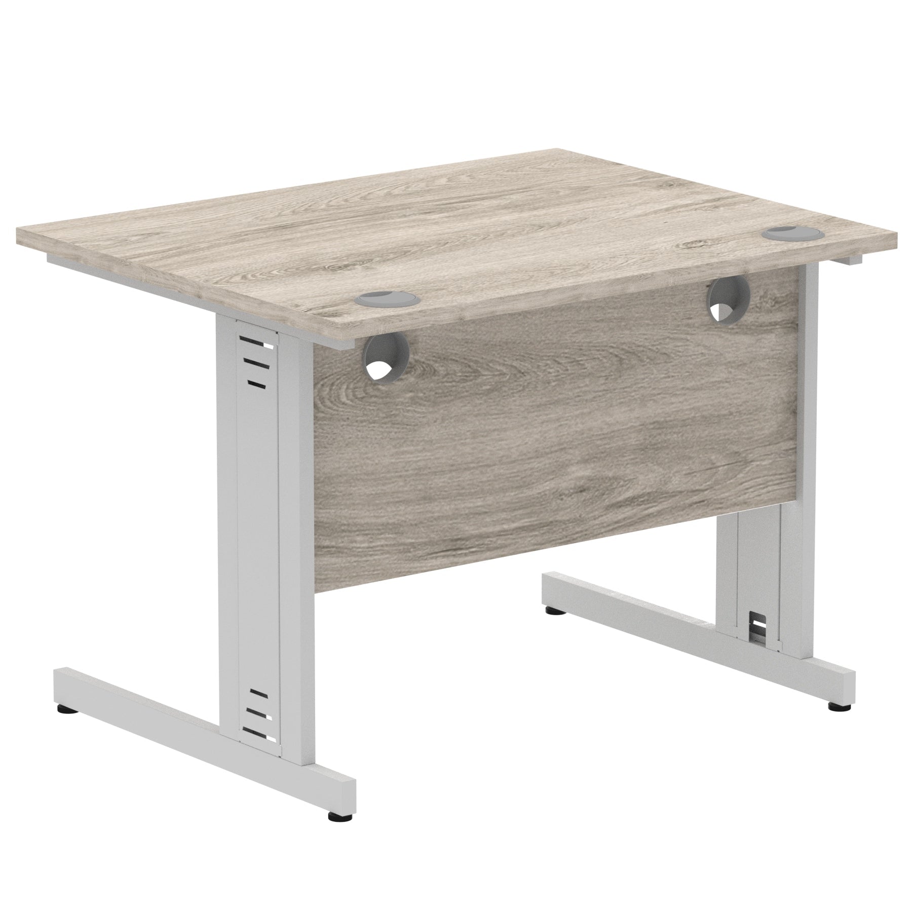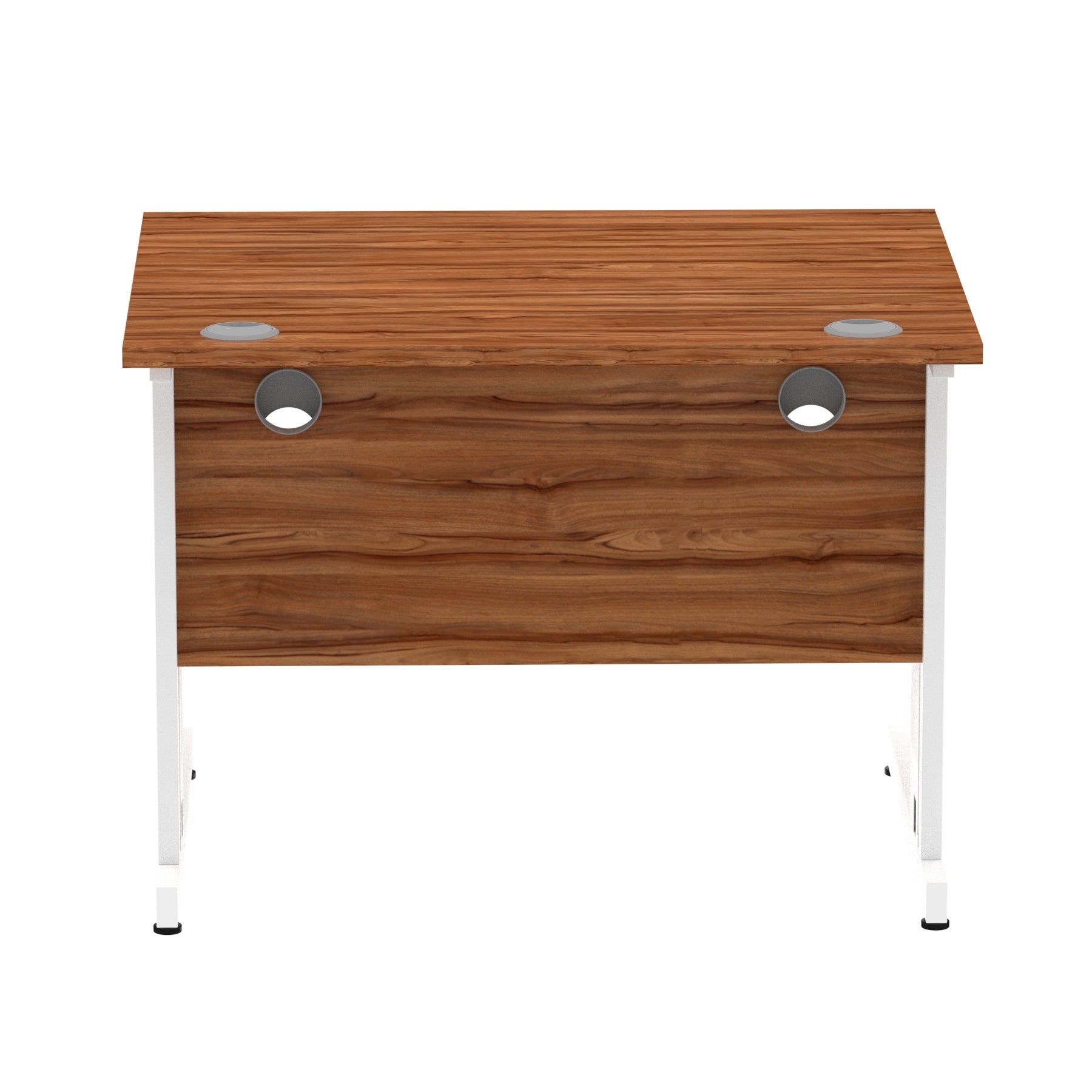 Impulse contract desk | 25mm tops | Wire management panel | Heat resistant melamine finish | 18mm modesty panel | 2mm protective abs edging | Cable managed legs | 2 cable ports | Height adjustable feet | Steel to steel fixings | 2 modesty panel slots | Deep set modesty panel (5") allows for compatibility of most screen clamp fittings | Weight Capacity 135Kg