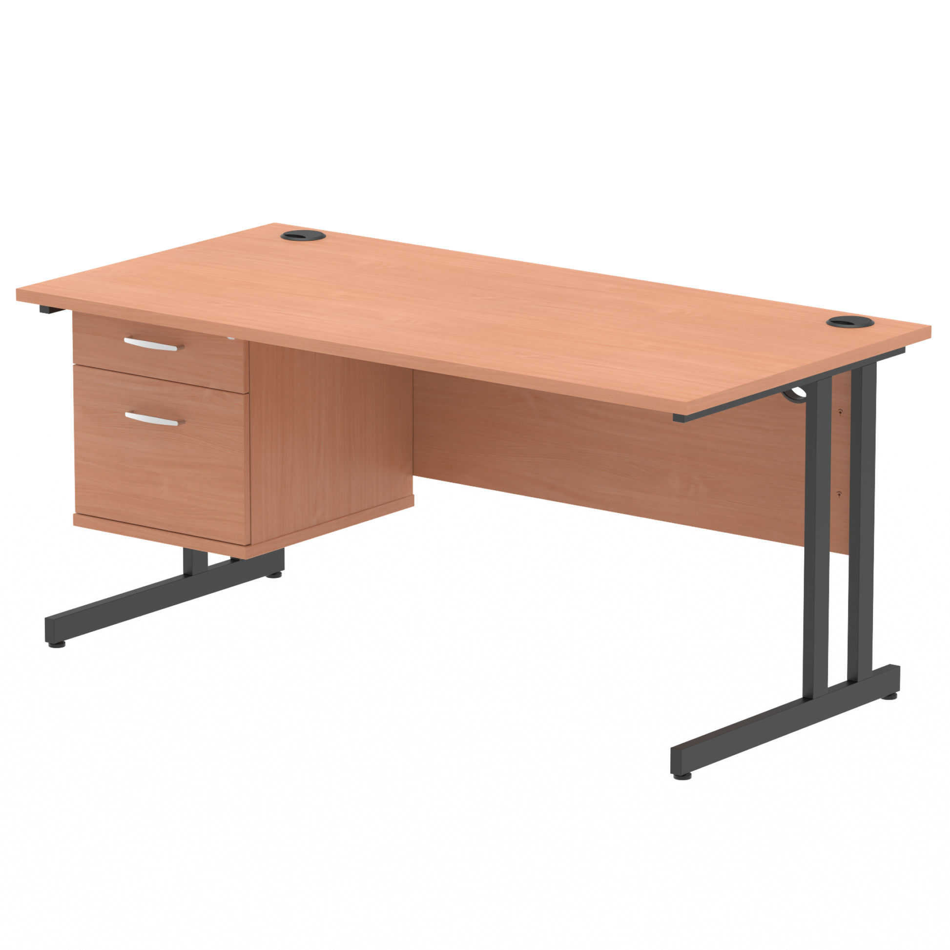 Impulse 1600mm Cantilever Straight Desk With Single Fixed Pedestal
